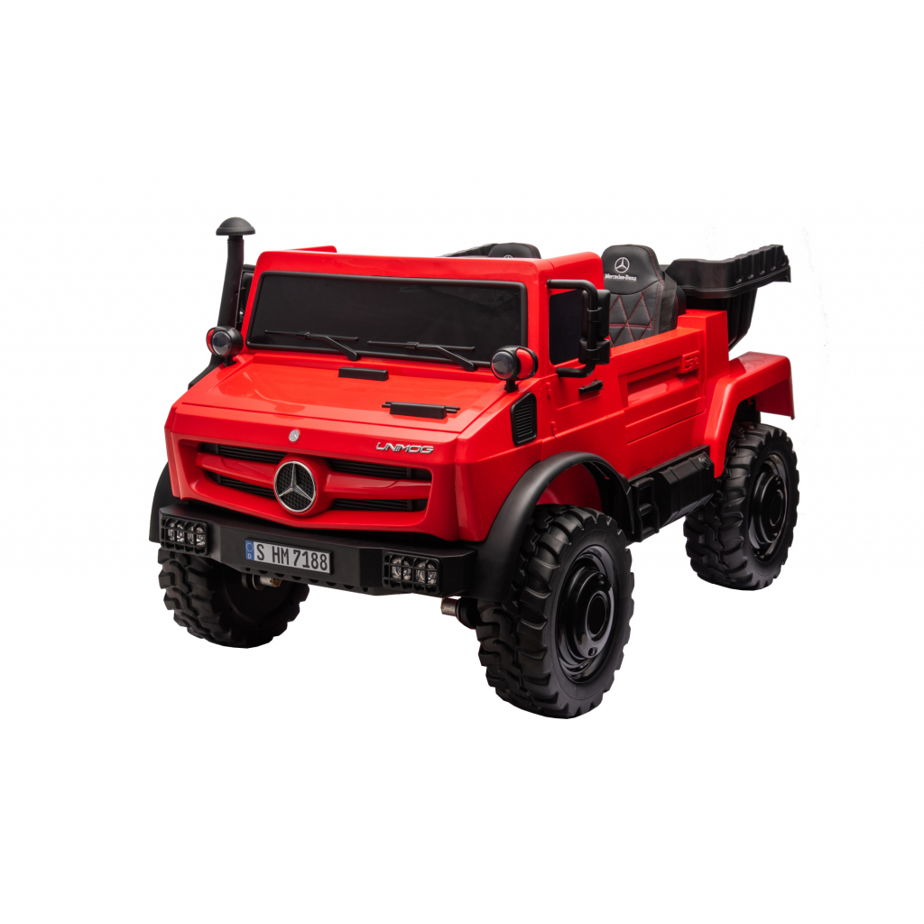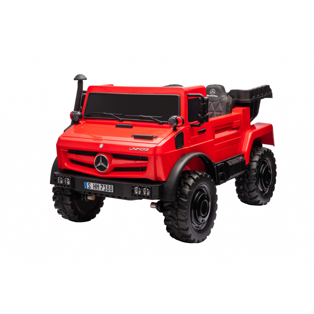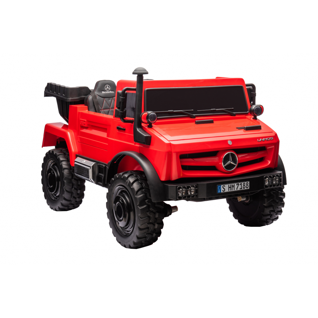 Camionul Mercedes-Benz Unimog este un vehicul electric pentru copii inspirat de celebrul camion utilitar Unimog. Designul robust, dimensiunile generoase si functia de bascula transforma acest model intr-un vehicul de joaca complex, potrivit pentru copii care prefera activitati interactive si jocuri de rol in aer liber.