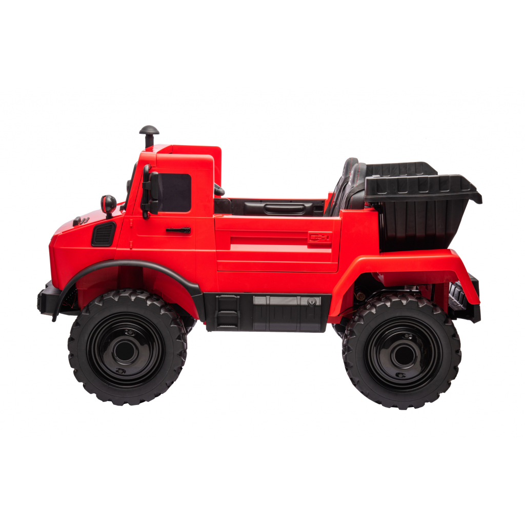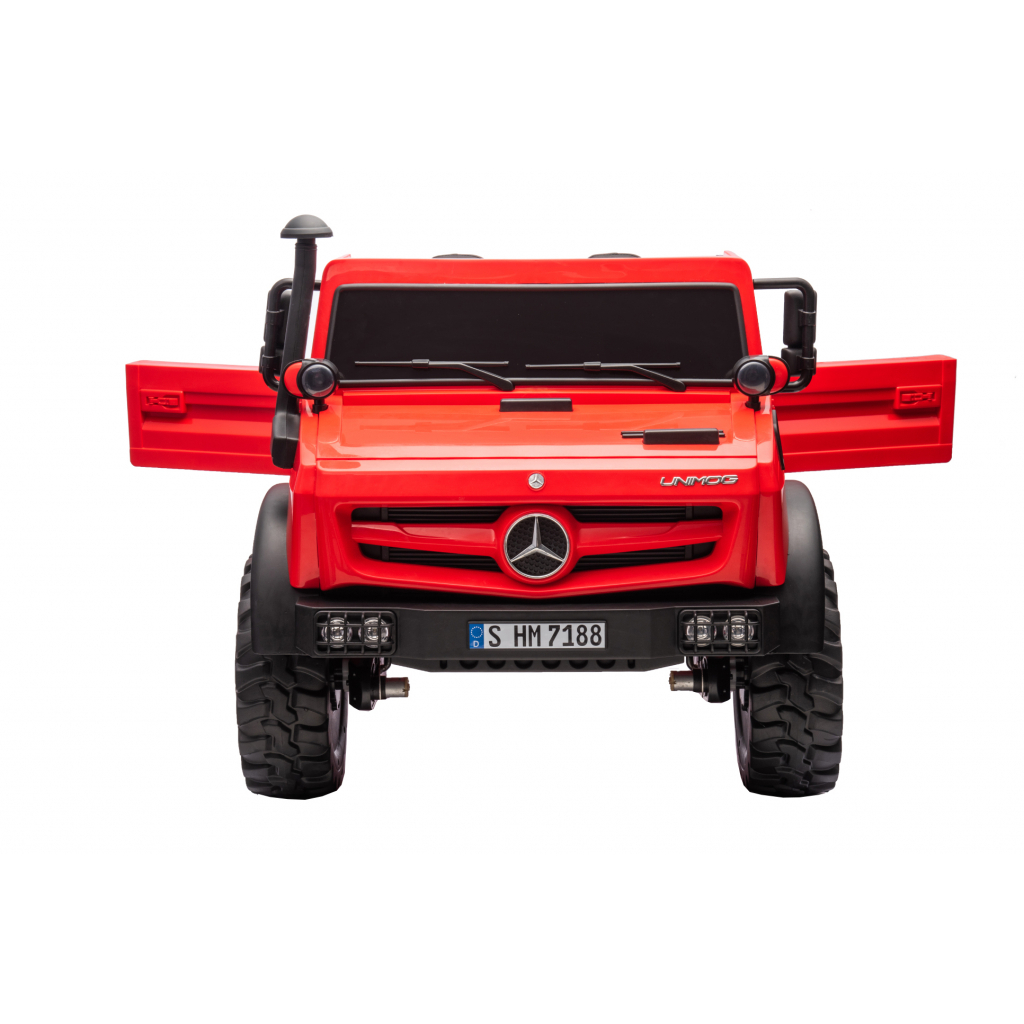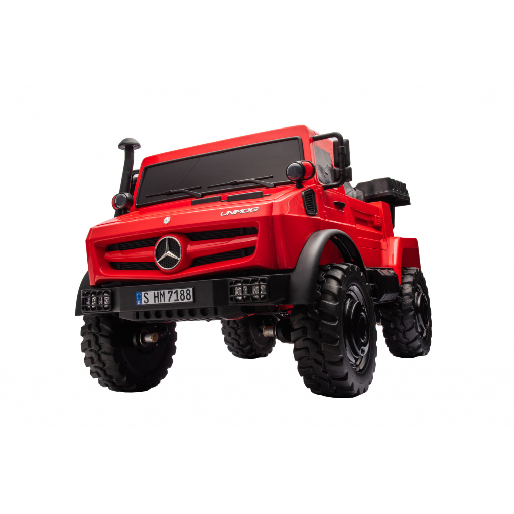 Camionul Mercedes-Benz Unimog este un vehicul electric pentru copii inspirat de celebrul camion utilitar Unimog. Designul robust, dimensiunile generoase si functia de bascula transforma acest model intr-un vehicul de joaca complex, potrivit pentru copii care prefera activitati interactive si jocuri de rol in aer liber.