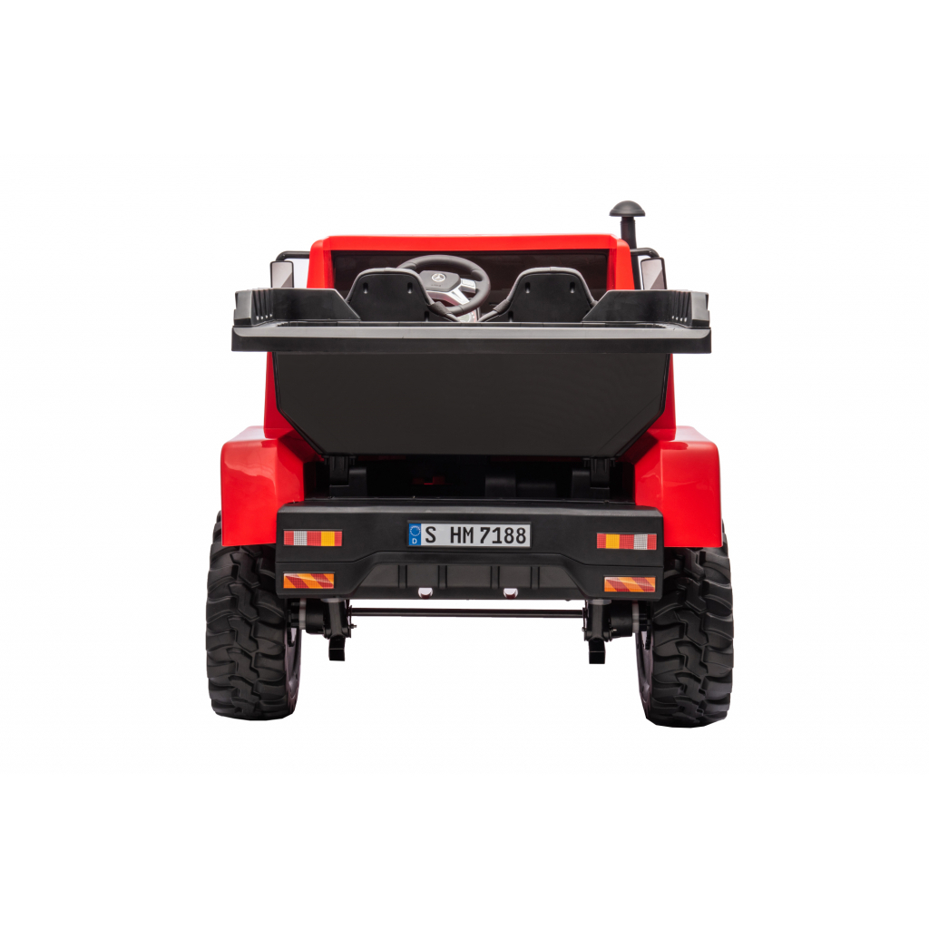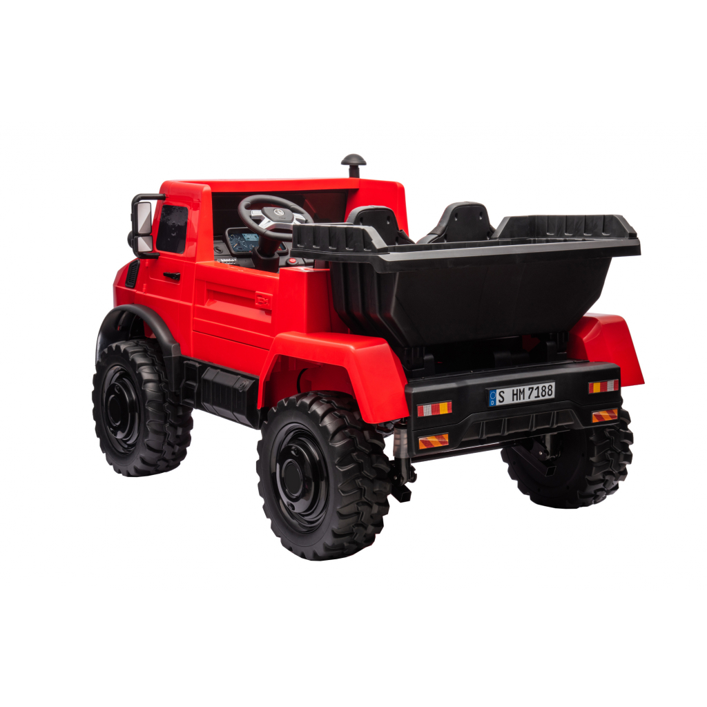 Camion electric cu bena rabatabila Premier Mercedes Unimog, 4x4, 12V, 2 copii, roti cauciuc EVA, scaun piele ecologica, rosu