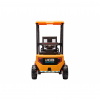 Stivuitorul este prevazut cu volan care imita foarte bine modelul original, pe volan exista 2 butoane care actioneaza claxonul (trebuiesc introduse 2 baterii AAA care se achizitioneaza separat). Conducerea stivuitorului se realizeaza prin rotirea volanului stânga-dreapta, accelerarea se realizeaza prin apasarea pedalei, iar frânarea se realizeaza prin eliberarea aceleiasi pedale. Viteza maxima pe care o poate atinge stivuitorul este de pâna la 4 km/h.
