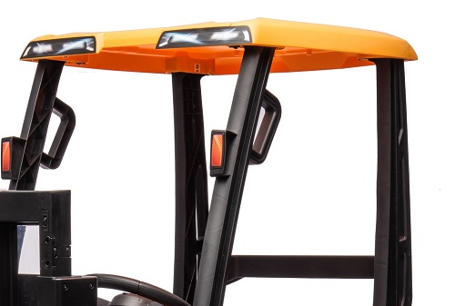 Stivuitorul este prevazut cu un acoperis ce da senzatia de cusca, respectând modelul real.